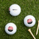Einzigartiger, individualisierbarer Monogramm-Erstgolfball. Ideal für alle Golfliebhaber. Einfach mit der Vorlage anpassen. Spaß weibliches Design. Einfache schwarze Silhouette mit Golf, Grün, Golfclub und einer Vorlage für die Golfflagge.