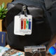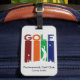 Die Figur eines Golfers, der seinen Club schwingt, wird auf diesem Gepäckanhänger dargestellt. Passen Sie das Design mit Ihrem Namen, Club und/oder Standort an.