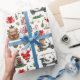 This Golf “Let’s Par-Tee” Christmas Party Pattern features Santa Claus holding champagne, a white golf cart wrapped in garlands and bows, and festive golf elements like flags, tees, ornaments, and gifts — all painted in elegant watercolor.