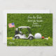 Golf Party mit Golfwagen und Flagge von Amerika Save the Date