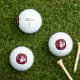 A rounded dark red design for a stylish golf player, personalized with his name, age and a graphic illustration of a man with a golf club.