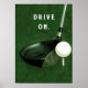 Kreative Golf-Dekoration mit Fahrer, Ball, Tee und Wörtern zum Golf durch.