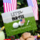 Golf Save the Date Golf Turnier mit U.S.A.Flag Ankündigungspostkarte