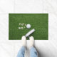 Golf setzen mit Putter und Golfball auf grün Doormat