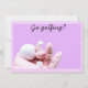 Golf spielen? Lady Golfer hält Golfball Einladung