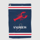 Geschenk-Golftuch des eleganten Hummers des individuellen Namens roten Golf spielendes. Gewohnheit druckte Sportgeschenke für ihn. Einzigartige Golf spielende Geschenke für Männer und Frauen. Einzigartige Geburtstagsgeschenkideen für Golfspieler, Ehemann, Vati, Ehefrau, Mamma, Vater, Freund, Co-Arbeitskraft, Chef, Kollegen, Trainer, Lehrer, Trainer, Lehrer, Großvater, pensionierte Person, Pensionär, Golfliebhaber, Spieler, Politiker, Turnier etc. einschließlich Haken, ihn oben zu hängen. Coole mit Monogramm Golfzusätze für Freunde und Familie. Auch groß für Weihnachts-oder Vatertag. Nobler Schablonenentwurf mit roten Streifen. Addieren Sie Ihren eigenen Familiennamen, Zitat oder Sprichwort. Luxusgeschenke mit schicker Beschriftung.