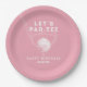 Celebrate in style with this golf-themed milestone birthday paper plate, featuring the clever pun "Let's Par-Tee" for a fun and sporty touch. Set against a pretty pink background, this design showcases a bold golf club and tee illustration, with a customizable name for the birthday honoree. This paper plate is ideal for golf-themed parties, milestone birthdays, and sports enthusiasts. Personalize yours today for a unique and memorable event!