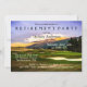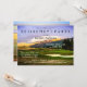 Die Party Einladung der Pension mit einem Golfplatz in einer farbenprächtigen Landschaft. Auf der Rückseite finden Sie ein elegantes gestreiftes Design (Sie können dies durch Ihr eigenes Bild ersetzen, wenn Sie möchten, oder wählen Sie eine schlichte Farbe).