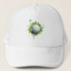 Moderne Illustration eines Golfballs als Erde mit Golfern und Golfflaggen in Grün.