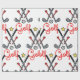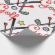 Überquerte Golfschläger, rote T-Shirts und Ball unter gelbem Stern.