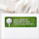Ein Golfball sitzt auf einem Tee auf einem Grasfeld, das für den nächsten Golfer gewartet wird. Ein Name und eine Rücksendeadresse werden daneben gedruckt. Ideal für Golfbegeisterte, Golflehrer, Trainer, Teams, Clubs, Sportgeschäfte oder Sportfachhändler. Verfügbar mit passenden Produkten. com