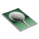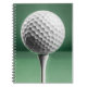 Spiralnotebook mit einem hochwertigen Bild eines weißen Golfballs auf weißem Tee vor grünem Hintergrund.