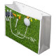 Golfball mit bunten T-Shirts auf grünem Gras Große Geschenktasche