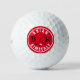 Personalisiertes rotes Kreisdesign für einen Golfspieler. Crossed Golf Clubs mit einem Golfball.. mit seinem Vor- und Nachnamen, und Initialen des stilvollen Golfisten.. um seine Golfbälle beim Spielen leicht zu identifizieren