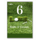 Golfball mit Liebe auf grünem Gras Tischnummer