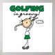 Eine Golferin aus Strichmännchen mit Klub und Text, die "Golfing is Groovy" auf golfenden T - Shirt, Hoodies, Tasse, Magneten, Karten, Aufklebern, Mousepads, Schlüsselanhängern, Wasserflaschen und vielem mehr liest.