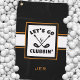 Im weißen Zentrum mit zwei schwarzen Golfklubs und einem Golfball auf weißem Grund, der in Orange gerahmt ist, befindet sich der "Let's Go Clubbin". Der untere Teil enthält eine moderne Vorlage für benutzerdefinierte Monogramm, Name oder Text der Wahl in Orange. Nachricht unter dieser Auflistung oder E-Mail beachpause@gmail.com mit benutzerdefinierten Farbanfragen.