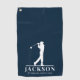 Dieses Design verfügt über einen Golfspieler, der einen Club schwingt und über zwei Textfelder, mit denen man ihn personalisieren kann - vielleicht mit einem Namen und einem Golfclub.