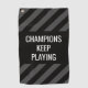 Golfer Modern Black Inspirational Quote Golf Handtuch hat ein schwarz-graues modernes Streifen Design mit einem inspirierenden Zitat "Champions behalt Play", um Sie motiviert behalten. Ein perfektes Geschenk für ihn, deinen Mann oder deinen Vater. Verwenden Sie den Bereich "Personalisieren", um Ihr Angebot hinzuzufügen oder verlassen, wie es ist. Originelle Kunstwerke von Kardz Studio. Wenn Sie Fragen haben, kontaktieren Sie mich bitte über den Zazzle Chat.