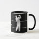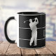 Auf beiden Seiten dieser Tasse befinden sich Bilder eines Golfers der silbernen Silhouette, der einen vollen Schwung nimmt. Dünne silberne Linien bilden einen Rahmen für Ihren Familiennamen, das Monogramm oder einen anderen benutzerdefinierten Text, der in Silber zwischen den Bildern übereinstimmt. Alles wird auf einem dramatischen schwarzen Hintergrund platziert. Wo immer du bist, zeig allen, dass du lieber Golf spielen würdest!