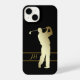 Dieses Gehäuse ist perfekt für den Golffan geeignet und verfügt über einen Golfer mit goldener Silhouette. Unten ist Ihr Monogramm gerahmt durch dünne dunklere Goldlinien. Text und Bild werden auf einem schwarzen Hintergrund platziert.