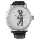 Uhr, Klassische Damenuhr mit schwarzen Lederarmband