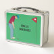 Golfer, mit einer Kappe, rotes Shirt und blaue Hose, wobei ein Golfball in eine Lochbox gelegt wird. Anpassen des Texts