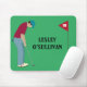 Golfer, mit einer Kappe, rotes Shirt und blaue Hose, wobei ein Golfball in ein Loch Design Mousepad gesteckt wird. Anpassen des Texts