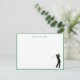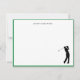 Personalized, Simple and elegant Golf lovers Flat note card featuring golfer silhouette with a thin green border. Make great gifts.
