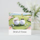 Ein charmantes und kreatives Hochzeitsdesign für Golfliebhaber. Diese Abbildung zeigt eine Golfbälle mit einem zarten Schleier und einen Bräutiggolfball mit einer Bugs-Krawatte, stehend nebeneinander auf einem schön getrimmten Putting Green. Umgeben von sanften Blumenakzenten und Golf-Themen, erweckt diese Einladung die Romantik und Persönlichkeit eines Paares, das das Spiel Liebe. Ideal für Hochzeiten im Freien, im Freien oder im Golf.