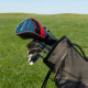 Golfername auf stilvollem Blau und Rot Golf Headcover