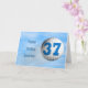 Eine tolle Karte für einen Golfer oder einen Golfer. Ein Golfball, der durch die Luft fliegt, auf dem 37 stehen.