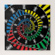 Dieses farbenfrohe Scheibengolfgrafik-Design verwendet den Droste-Effekt, um eine unendliche Serie von Spinnweben zu erstellen.