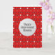 Diese stilvolle Sportausscheidungskarte hat ein Muster von Golfklubs auf rotem Hintergrund und einen großen Golfball auf der Vorderseite, auf dem Sie Ihren bevorzugten Gruß und Namen hinzufügen können. Im Inneren gibt es ein Muster von Golfbälle und die bearbeitbare Nachricht "Reife zum neunzehnten Loch!"