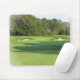 Golfplatz mit einer grünen Fahrrinne und Sandgruben.