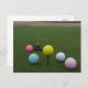 Gelbe, rosa und weiße, leuchtend farbige Golfbälle auf einem Foto von Sandy Closs am Arrowhad-See. Golf, Golfer, Golfen, "Golf Grobse", Frühjahr, "Sport", Ostern, Urlaub, "Osterei" pink, Golfer blau gelb Kanincheneier