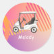 Golfwagen auf rosa farbigem Hintergrund mit Namen Runder Aufkleber