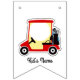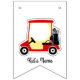 Ein roter Goldkarren, seitlich gesehen, mit Tasche und Clubs ohne Leute, weiße Kontur rund um "Sticker-Stil"