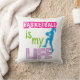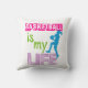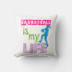 Buntes Basketball-Wurfskissen mit dem Text, "Basketball ist mein Leben". Es hat eine weibliche Basketballspieler-Silhouette. ©gollygirls.com
