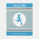 Coole personalisierte Fußball-Fleecedecke mit den blauen und grauen Zickzack Streifen, ein Mädchenfußballspieler mit Ball und kundenspezifisches Textfeld für Ihren Namen!