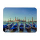 Aquarellmalerei der Gondelpferde-Reihe verankertes Foto auf dem Canal Grande mit der Kirche San Giorgio Maggiore im Hintergrund, Venedig, Italien. Parkplatz Gondeln auf der Piazza San Marco.