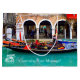 Elegante Gondeln parkten durch das Ufer und friedlich schwammen auf das blaue Wasser auf einem kleinen Kanal im Cannaregio Bezirk, von Venedig, Italien.