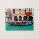 Elegante Gondeln parkten durch das Ufer und friedlich schwammen auf das blaue Wasser auf einem kleinen Kanal im Cannaregio Bezirk, von Venedig, Italien.