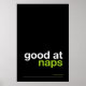 Cozy and minimalist wall art for nap lovers. “GOOD AT NAPS” is a modern typography poster perfect for bedrooms, home offices, and relaxed living spaces. Available in multiple color backgrounds.