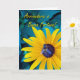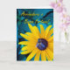 Eine Biene auf einer schwarz-Mit Augen Susan schmückt diese auf Italienisch geschriebene viel Glück- und Abschiedskarte. Text im Inneren übersetzt als: "Viel Glück in der Zukunft. Ich werde dich vermissen." Arrivederci e Buona Fortuna, auf dem Cover geschrieben. Art, Bild und Vers Copyright © Shoaff Ballanger Studios, 2022.