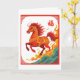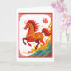 Its flowing mane and tail become tongues of flame, rendered in gradients of red and orange, reinforcing a sense of speed and fierce energy. Beneath the horse, stylized waves in teal, blue, and green roll. At the upper right sits the Chinese character “福” (fortune/blessing)