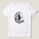 Good Hexe Vibes Moderner Halloween Mondskript-T - Shirt zeigt eine Silhouette einer Hexe auf einem Besenstiel, der vor einem Halbmond fliegt und Sterne mit dem Text "Good Hexe Vibes" in der modernen Kalligraphie-Skript. Ideal für Trick, Halloween, Geburtstagsfeiern, Geschenke und vieles mehr. Von Evco Holidays entworfen www.zazzle.com/store/evcoholidays