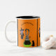 Mit dieser Halloween-Tasse, die eine Hexe, Hexenbeine und eine schwarze Katze aufweist, können Sie die unheilvolle Jahreszeit genießen. Diese Tasse bringt den Halloween-Geist zum Leben.