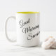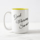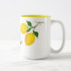 Mit der Good Morning Sunshine Kaffee Tasse können Sie sich morgens ein wenig sonnig fühlen. Lemons und Blätter aus der originalen Gache-Malerei von Lonielle De Haven