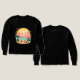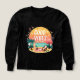 Eine fröhliche Picknickszene am Strand mit Surfbrett, Palmen und Sonnenuntergang, die "Gute Bilder in einem Während!" verbreitet. Ideal für entspannte Tage, Sommerstimmung und sorgenfreie Momente. Lass die guten Villen rollen, wo immer du hingehst!